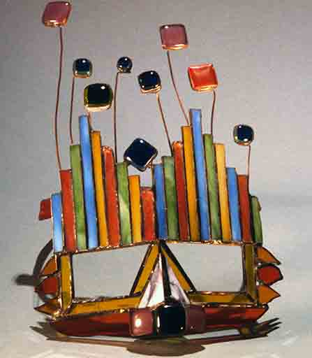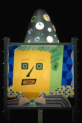 The Blockhead Lamp won the Glass Art Society 1990 convention top award—"Least Likely to Sell in a Gallery"—chosen by jurors and outstanding artist duo Komar and Melamid.Blockhead Lamp: "I think; therefore, I'm confused"