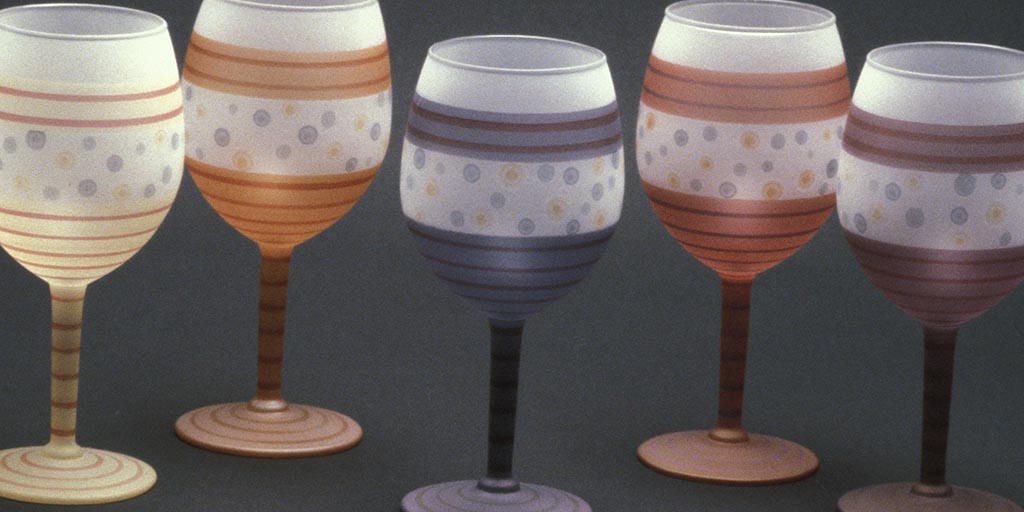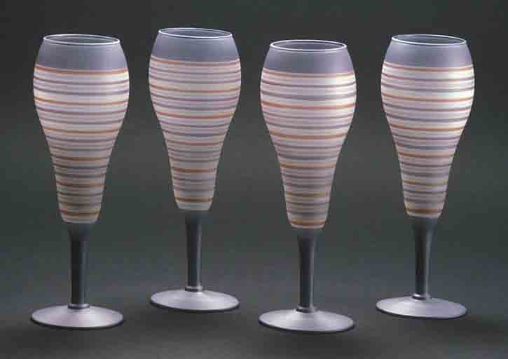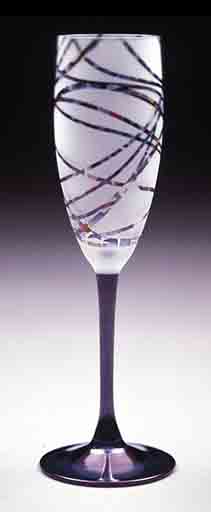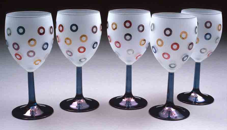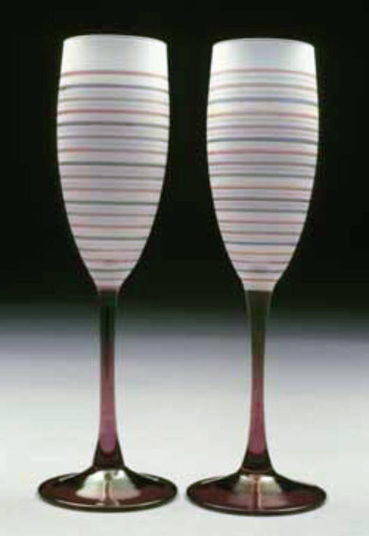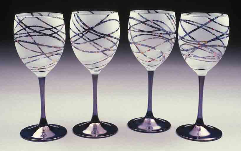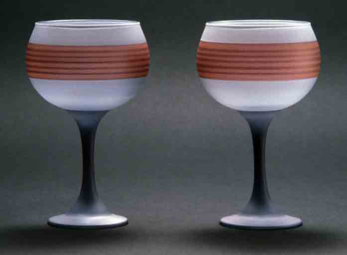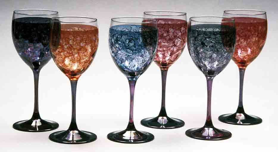 I wasn't familiar with glass lustres, which are a very fluid suspension of metallic oxides which can render quite pure colors in glass when fire in a kiln. I developed a line of wineglasses that I sold through galleries and gift shops through the 1980's.