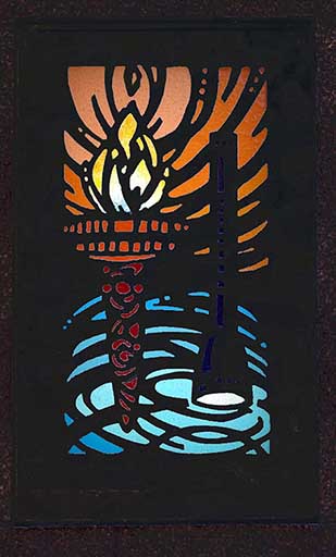 Together we designed a fused glass lantern with a stainless steel overlay entitled "Two Torches."