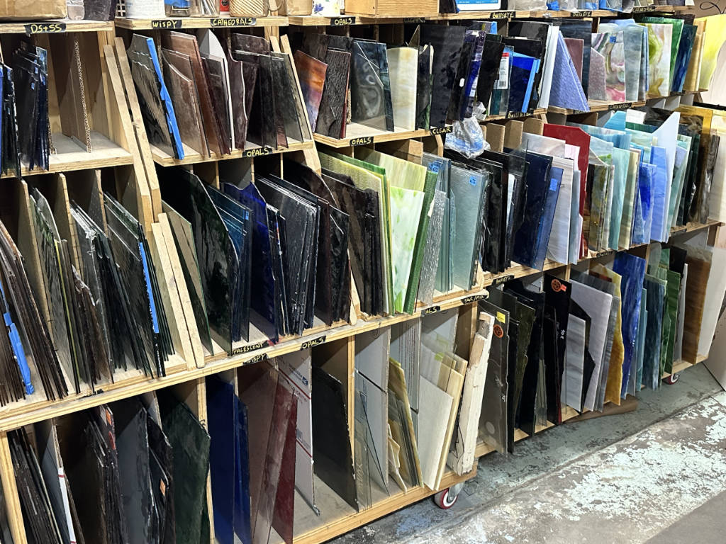While there is a lack of suppliers in Oregon, Rose's Glassworks and School in Tigard (no relation) offers classes and a well-rounded collection of glass and basic supplies. Bullseye Glass in Portland sells their own large production of glass along with kilns and some tools.