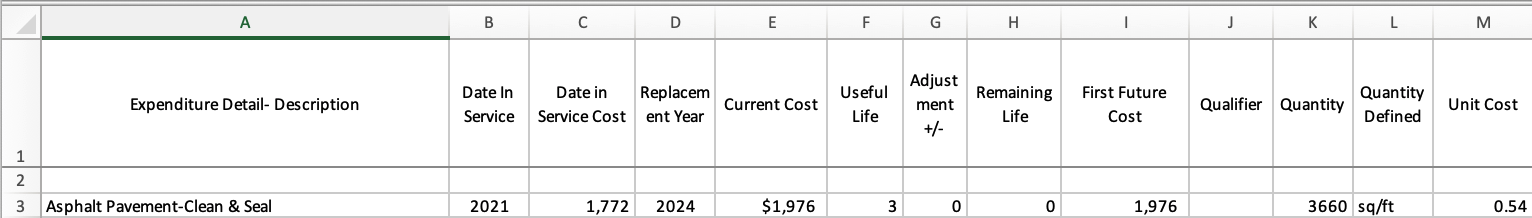 The first item in our example is "Asphalt Pavement - Clean and Seal."