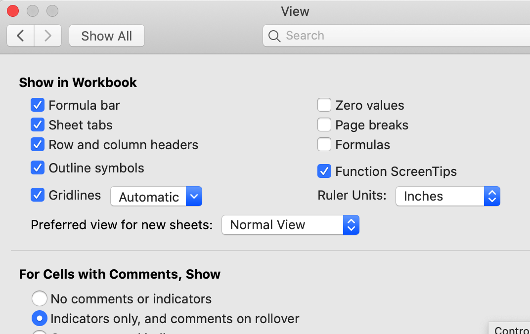 We again set zeros not to show at the Excel menu: Excel -> Preferences -> View.