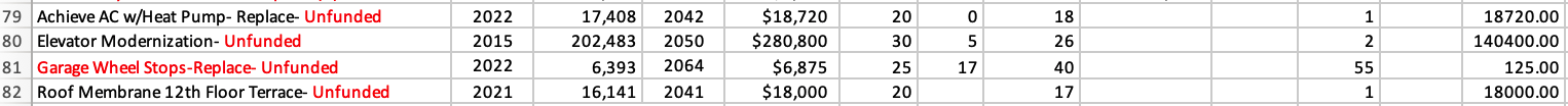 I embarked on this project to mirror and to be able to edit a professionally done reserves study for my Homeowners Association (HOA)—a formal name for a condomoinium governing structure. I want to review that study and be able to make corrections and vary payment scenarios to inform future versions of the same study.