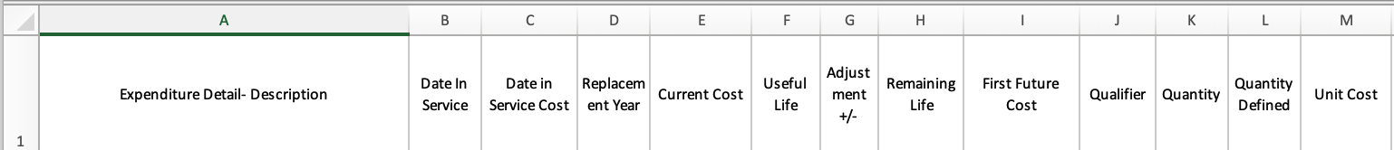 When a component is serviced, a record is kept of the year and the cost. This is recorded in columns B and C, Date in Service and Date in Service Cost.